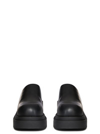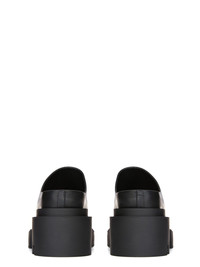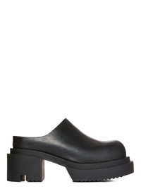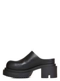 RICK OWENS SS24 LIDO BOGUN SLIDE IN GROPPONE COW LEATHER THESE BOGUN SLIDES HAVE AN OPEN BACK, A ROUNDED TOE AND FEATURE A BOGUN RUBBER MEGA CREEPER SOLE WITH A TOOTHED, SQUARE HEEL THIS HEAVYWEIGHT COW LEATHER IS VEG TANNED AND FINISHED USING NATURAL WAXES. BECAUSE THIS SKIN IS NAKED, NOT FINISHED USING ANY PIGMENTS COVERING THE SKIN, NATURAL MARKINGS AND SHADINGS ARE VISIBLE WHICH MAKES EACH SKIN AND PRODUCT UNIQUE. VEG TANNING MEANS ONLY VEGETAL AND NATURAL TANNINS WERE USED IN THE PROCESS OF TANNING AND PRESERVING THIS LEATHER. THIS TANNERY IS LWG CERTIFIED WITH A GOLD RATING. - COLOR: BLACK - MATERIAL: UPPER 100% COW LEATHER - LINING 100% CALF LEATHER - PLANTAR FACING 100% CALF LEATHER - SOLE 100% THERMOPLASTIC POLYURETHANE - HEEL 6CM