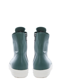 RICK OWENS FW22 STROBE SNEAKERS IN TEAL AND MILK WHITE CORTINA GREASE CALF LEATHER THESE SNEAKERS ARE ABOVE ANKLE HEIGHT AND FEATURE SEVEN EYELETS, LACES, A ZIPPER ON THE INSIDE ANKLE FOR EASY FASTENING, TOE CAPS AND SHARK-TOOTH SOLES THIS FULL GRAIN CALF LEATHER HAS A WAXY MATTE FINISH - COLOR: TEAL/MILK WHITE - MATERIAL: UPPER 100% CALF LEATHER - TOE 100% CALF LEATHER - LINING 100% CALF LEATHER - INSOLE 100% CALF LEATHER - SOLE 100% RUBBER