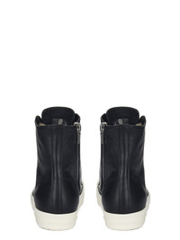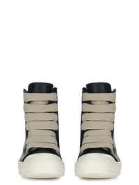 RICK OWENS FW24 PORTERVILLE JUMBOLACED SNEAKERS IN BLACK/PEARL/MILK/MILK FULL GRAIN CALF LEATHER THESE JUMBOLACED SNEAKERS ARE ABOVE-ANKLE HEIGHT AND SEVEN FEATURE EYELETS, JUMBO LACES, A ZIPPER ON THE INSIDE ANKLE FOR EASY FASTENING, TOE CAPS AND SHARK-TOOTHED BUMPER SOLES THIS MEDIUMWEIGHT FULL GRAIN CALF LEATHER HAS A FLAT AND MATTE SURFACE FINISH AND IS SPECIFICALLY TANNED FOR SHOES WITH AN ABRASION-RESISTANT FINISH - COLOR: BLACK/PEARL/MILK/MILK - MATERIAL: UPPER 100% COW LEATHER - TOE 100% CALF LEATHER - LINING 100% CALF LEATHER - INSOLE 100% CALF LEATHER - SOLE 100% THERMOPLASTIC RUBBER