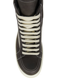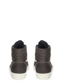 RICK OWENS FW24 PORTERVILLE HIGH VINTAGE SNEAKS IN DARK DUST/MILK/MILK GREYWOLF NUBUCK AND VELOUR SUEDE THESE HIGH VINTAGE SNEAKS ARE ABOVE ANKLE HEIGHT AND HAVE TEN EYELETS WITH LACES AND SHARK-TOOTHED BUMPER SOLES. THEY FEATURE A TRIANGULAR LEATHER APPLIQUE ON THE SIDE FOOT, A PADDED ANKLE AND CONTRAST STITCHING THIS IS A COMBINATION OF GREYWOLF NUBUCK AND VELOUR SUEDE THIS HEAVYWEIGHT BULL LEATHER HAS A BRUSHED NUBUCK FINISH AND WAXY HANDFEEL. BECAUSE THIS SKIN IS NAKED, NOT FINISHED USING ANY PIGMENTS COVERING THE SKIN, NATURAL MARKINGS AND SHADINGS ARE VISIBLE WHICH MAKES EACH SKIN AND PRODUCT UNIQUE. THIS TANNERY IS LWG CERTIFIED WITH A SILVER RATING. - COLOR: DARK DUST/MILK/MILK - MATERIAL: UPPER 100% CALF LEATHER - LATERAL DETAILS 100% CALF LEATHER - LINING 100% CALF LEATHER - INSOLE 100% CALF LEATHER - SOLE 100% THERMOPLASTIC RUBBER