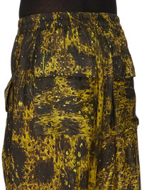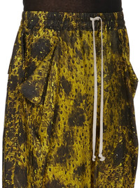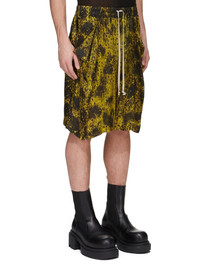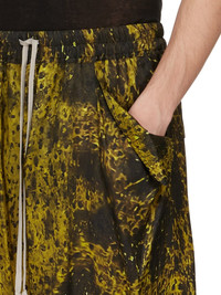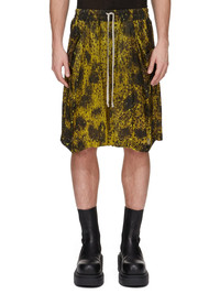 RICK OWENS SS25 HOLLYWOOD LIDO BOXERS IN ACID/BLACK WOLFFISH PRINTED JAPONETTE THESE LIDO BOXERS ARE KNEE-LENGTH. THEY HAVE AN ELASTICIZED WAISTBAND WITH DRAWSTRING, A LOOSE FIT AND A SLIGHTLY DROPPED CROTCH. THEY HAVE SIDE FRONT POCKETS WITH CORNERS THAT FOLD OUTWARDS AND GAPE SLIGHTLY, AND TWO SQUARE PATCH POCKETS WITH FLAPS ON BACK THIS LIGHTWEIGHT AND FLUID JAPONETTE HAS A COOL HANDFEEL AND IS DIGITALLY PRINTED WITH OUR SEASONAL WOLFFISH MOTIF. THIS FABRIC IS MADE USING CUPRO WHICH IS BIODEGRADABLE AND 100% PLANT BASED. AS IT’S MADE FROM COTTON WASTE, CUPRO HELPS FIND A PURPOSE TO FIBERS THAT WOULD OTHERWISE BE DISCARDED COLOR: ACID/BLACK MATERIAL: 100% CUPRO MODEL IS 189CM TALL MODEL WEARS SIZE 48