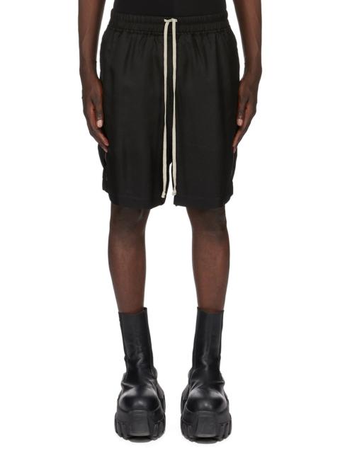 RICK OWENS FW25 CONCORDIANS BOXERS IN BLACK CUPRO TWILL THESE BOXERS ARE KNEE LENGTH. THEY HAVE AN ELASTICIZED WAIST, A SLIGHTLY DROPPED CROTCH, SIDE WELT POCKETS AND BEVELED SIDE SPLITS THIS LIGHTWEIGHT AND FLUID CUPRO TWILL HAS A GLOSSY SURFACE AND A SOFT, WASHED HANDFEEL THIS FABRIC IS MADE USING CUPRO WHICH IS BIODEGRADABLE AND 100% PLANT BASED. AS IT’S MADE FROM COTTON WASTE, CUPRO HELPS FIND A PURPOSE TO FIBERS THAT WOULD OTHERWISE BE DISCARDED COLOR: BLACK MATERIAL: 100% CUPRO MODEL IS 189CM TALL MODEL WEARS SIZE 48