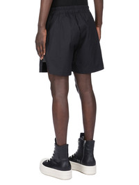RICK OWENS SS25 HOLLYWOOD BELA BOXERS IN BLACK HEAVY COTTON POPLIN THESE BELA BOXERS ARE ABOVE-KNEE LENGTH WITH A LOOSE FIT. THEY HAVE AN ELASTICIZED WAISTBAND WITH DRAWSTRING, A BELA EXPOSED CENTER ZIPPER WITH TWO SNAP DETAIL, AT BOTTOM, SIDE POCKETS WITH EYELET AND RIVET DETAIL, AND SPLITS IN THE HEM AT THE SIDE SEAMS THIS MEDIUMWEIGHT COTTON POPLIN HAS A CRISP HANDFEEL AND WASHED FINISH THIS FABRIC IS MADE USING GOTS CERTIFIED ORGANIC COTTON WHICH MEANS THE NATURAL FIBER IS GROWN WITHOUT HARMFUL CHEMICALS, LEAVING OUR SOIL, AIR AND WATER CLEANER FROM CONTAMINATES COLOR: BLACK MATERIAL: 97% COTTON + 3% ELASTANE MODEL IS 189CM TALL MODEL WEARS SIZE 48