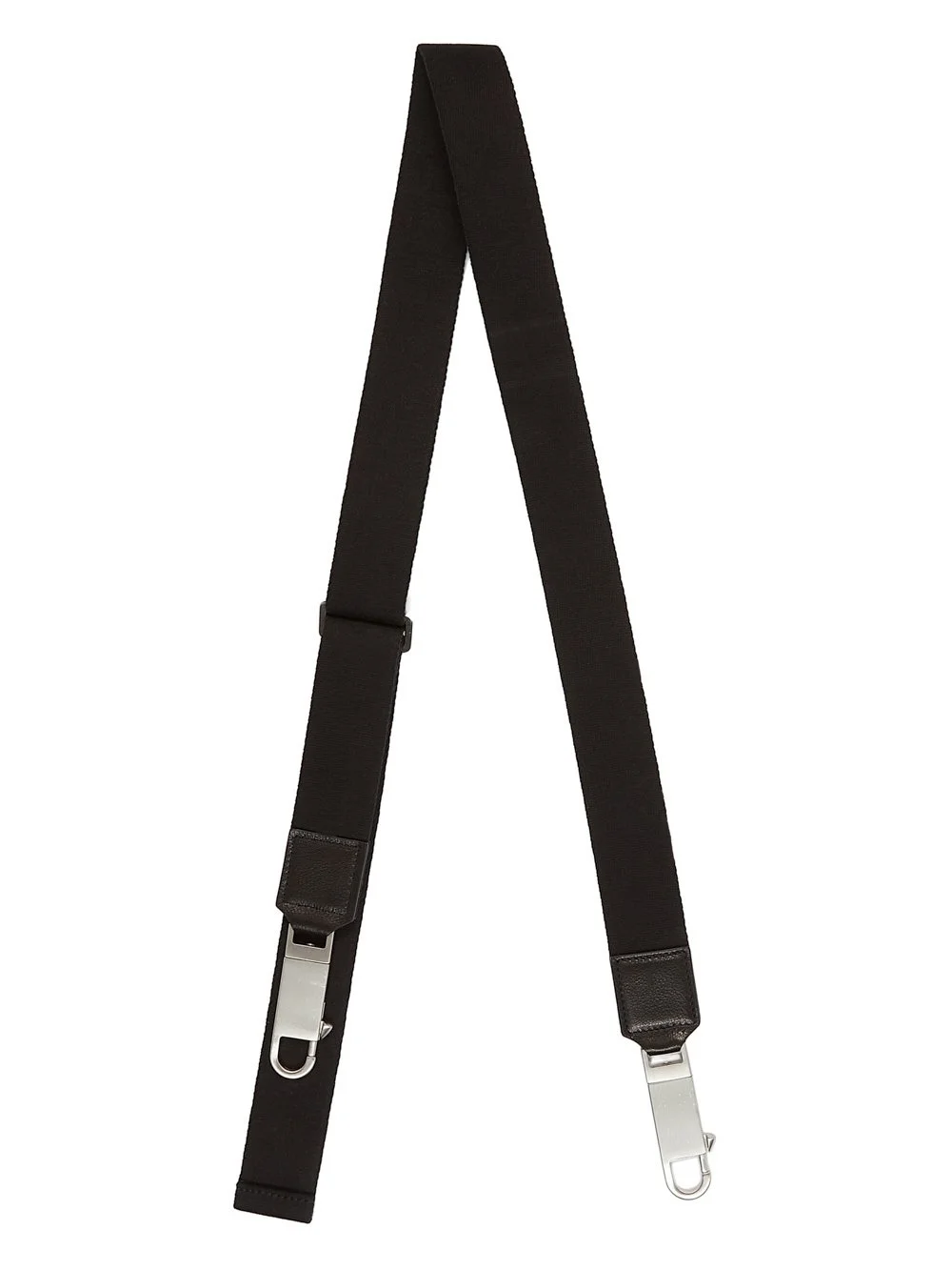 RICK OWENS FW25 CONCORDIANS WEBBING STRAP IN BLACK COTTON WEBBING THIS WEBBING STRAP IS AN ADJUSTABLE BAG STRAP MADE IN THICK COTTON WEBBING. IT FEATURES A BIG SNAP HOOK ON EITHER END IN PALLADIUM TONE BRASS. THIS STRAP IS DESIGNED TO BE SOLD AS AN ADDITION TO ALL OF OUR BAGS WITH DETACHABLE LEATHER STRAPS. IT IS EMBOSSED WITH THE RICK OWENS LOGO THIS MATERIAL IS A THICK WOVEN COTTON WEBBING COLOR: BLACK MATERIAL: 100% COTTON DETAILS 100% CALF LEATHER MINIMUM LENGTH 36CM - MAXIMUM LENGTH 141CM