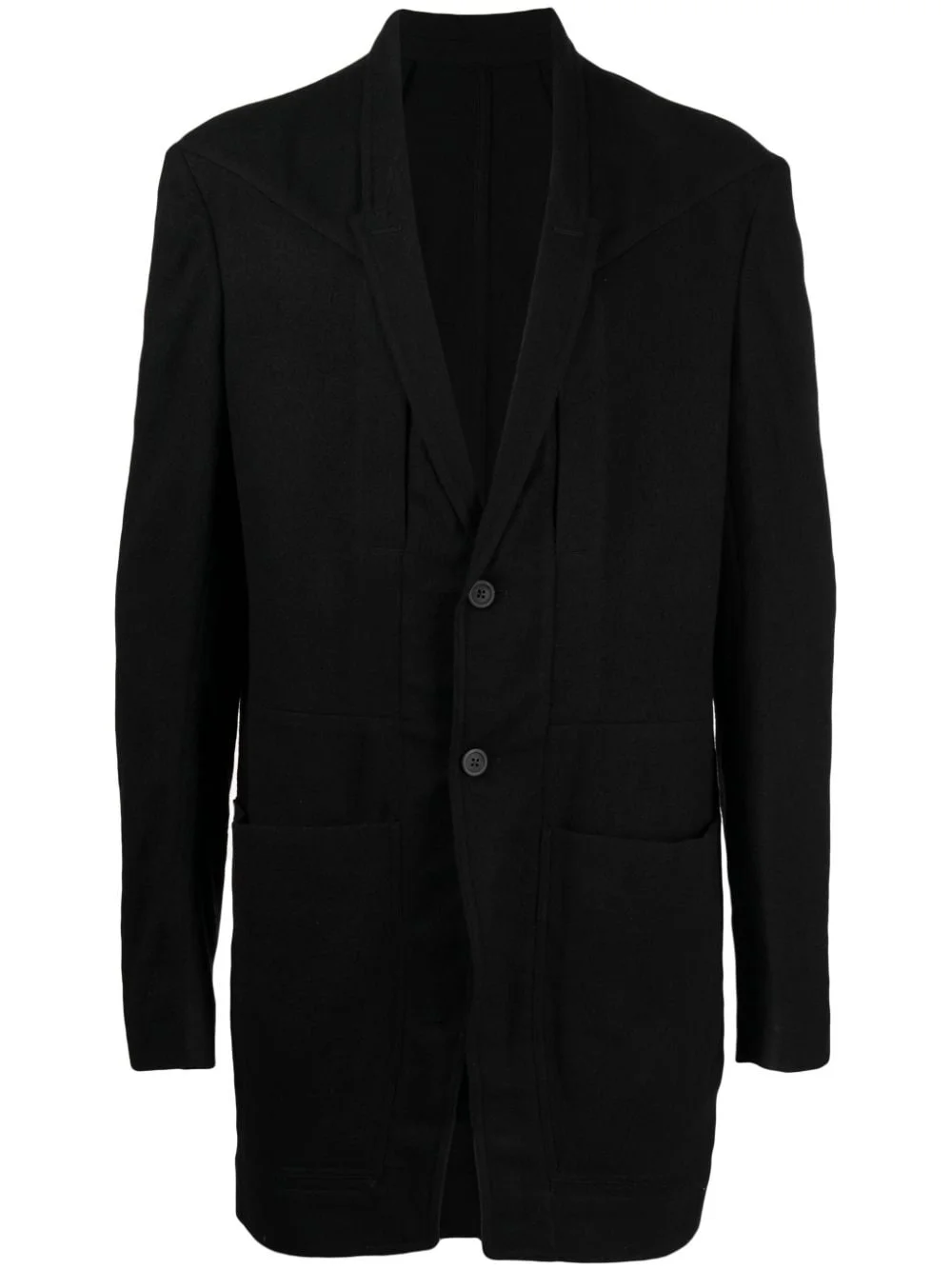 single-breasted wool blazer Highlights - Black - Wool - V-neck - Cotton lining - Adjustable strap to the rear - Notched lapels - Front button fastening - Long sleeves - Buttoned cuffs - Straight hem Made in Italy Composition Outer: Wool 100% Sleeve Lining: Cupro 100% Lining: Cotton 100% SIZE & FIT Model measurements Height 6 ft 2 in(1.87 m) Bust/Chest 31.49 in(80 cm) Hips 37.79 in(96 cm) Waist 27.95 in(71 cm) FittingInformation Designed to be unstructured, offering a loose fit throughout The vented hem offers movement at the rear Made from a lightweight non-stretch fabric This piece fits true to size – take your usual size Washing instructions Dry Clean Only