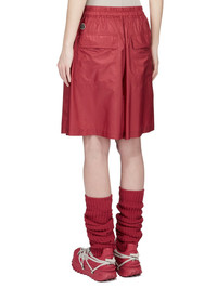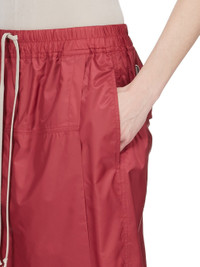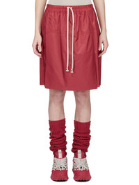 MONCLER + RICK OWENS SS26 KILTSHORTS IN CARNELIAN RECYCLED ULTRA-LIGHTWEIGHT POLYESTER THESE MONCLER + RICK OWENS KILTSHORTS IN RECYCLED ULTRA-LIGHTWEIGHT POLYESTER ARE KNEE LENGTH WITH A REGULAR FIT. THEY FEATURE AN ELASTICIZED WAISTBAND WITH DRAWSTRING AND A FRONT KILT FLAP. THEY FEATURE SIDE SEAM POCKETS AND BACK PATCH POCKETS WITH FLAP AND A HORN 4-HOLE BUTTON CLOSURE. THEY HAVE A MONCLER + RICK OWENS EMBROIDERED LOGO PATCH ON THE LEFT BACK HIP THIS LIGHTWEIGHT AND AIRY POLYESTER HAS A SEMI-SHINY SURFACE AND A SOFT, TECHNICAL HANDFEEL. THIS PRODUCT WAS MADE USING CERTIFIED RECYCLED POLYESTER. COLOR: CARNELIAN MATERIAL: 100% POLYESTER MALE MODEL IS 189 CM TALL, FEMALE MODEL IS 181 CM TALL MALE MODEL IS WEARING SIZE M, FEMALE MODEL IS WEARING SIZE S