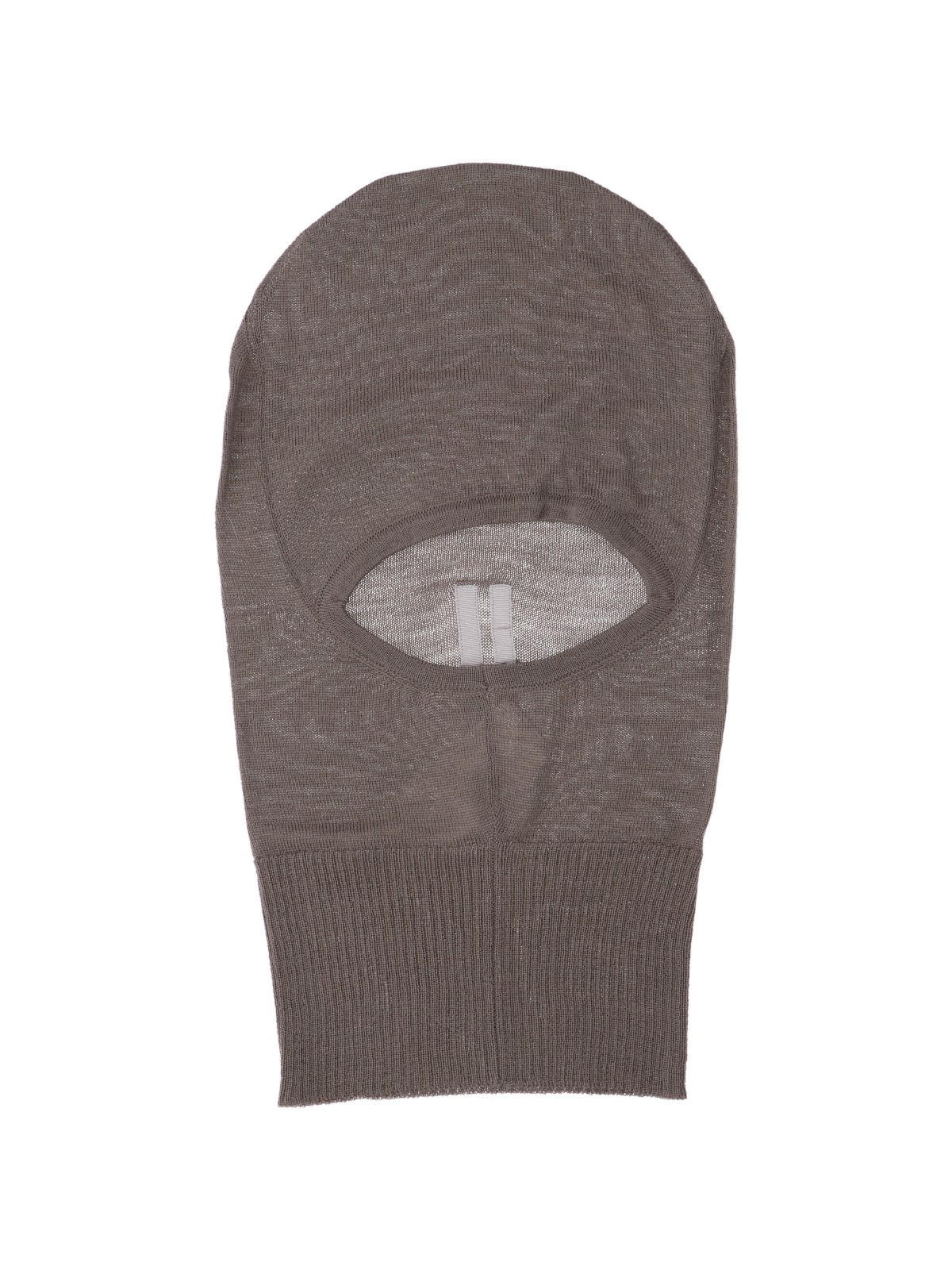 RICK OWENS 'SKULL' GREY WOOL BALACLAVA WITH ICONIC BACK CUT, RIBBED TRIM. PRODUCT INFO PRODUCT CODE RU02D6478 M34 COMPOSITION: 100% WOOL MADE IN: ITALY