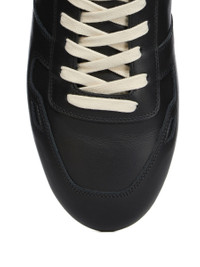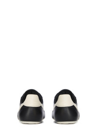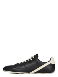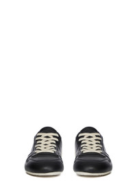 RICK OWENS FW25 CONCORDIANS MINIMAL SNEAK IN BLACK/MILK/MILK FULL GRAIN COW LEATHER THIS MINIMAL SNEAK IS A SIMPLIFIED VERSION OF OUR RUNNER COLLECTION. IT IS UNDER-ANKLE HEIGHT. THEY FEATURE A THIN SHARK TOOTH SOLE, SIX EYELETS, LACES AND SIGNATURE INTEGRATED ANGLED CONTRAST COLOR SIDE STRIPE. THIS MEDIUMWEIGHT FULL GRAIN COW LEATHER HAS A FLAT AND MATTE SURFACE FINISH AND IS SPECIFICALLY TANNED FOR SHOES WITH AN ABRASION-RESISTANT FINISH. THIS TANNERY IS LWG CERTIFIED WITH A BRONZE RATING. COLOR: BLACK/MILK/MILK MATERIAL: UPPER 100% COW LEATHER LINING 100% CALF LEATHER INSOLE 100% CALF LEATHER SOLE 100% RUBBER