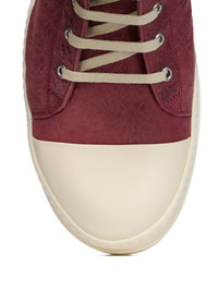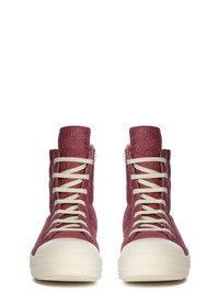 RICK OWENS FW25 CONCORDIANS SNEAKERS IN ROSEWOOD/MILK/MILK WAXY GOAT LEATHER THESE SNEAKERS ARE ABOVE-ANKLE HEIGHT AND FEATURE SEVEN EYELETS, LACES, A ZIPPER ON THE INSIDE ANKLE FOR EASY FASTENING, TOE CAPS AND SHARK-TOOTHED BUMPER SOLES THIS HEAVYWEIGHT SHEARLING LAMB LEATHER HAS A WAXY NAPPA FINISH AND A SOFT NATURAL FUR TANNED IN THE TUSCANY AREA OF ITALY, THESE SHEARLING MERINO HIDES ARE OF SPANISH ORIGIN, THE UNIQUE THICK FUR OF THESE ANIMALS MAKE THEM PERFECT FOR SHEARLING. BECAUSE THE HAIR IS NATURAL, THERE WILL BE VARIATIONS IN HAIR LENGTH AND TEXTURE, MAKING EACH PIECE UNIQUE THIS TANNERY IS LWG CERTIFIED WITH A SILVER RATING COLOR: ROSEWOOD/MILK/MILK MATERIAL: UPPER 100% LAMB SHEARLING REAL FUR TOE 100% COW LEATHER INSOLE 100% CALF LEATHER AVAILABLE IN SIZES 24 TO 35.