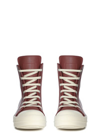 RICK OWENS FW25 CONCORDIANS SNEAKERS IN ROSEWOOD/MILK/MILK FULL GRAIN COW LEATHER THESE SNEAKERS ARE ABOVE-ANKLE HEIGHT AND FEATURE SEVEN EYELETS, LACES, A ZIPPER ON THE INSIDE ANKLE FOR EASY FASTENING, TOE CAPS AND SHARK-TOOTHED BUMPER SOLES THIS MEDIUMWEIGHT FULL GRAIN COW LEATHER HAS A FLAT AND MATTE SURFACE FINISH AND IS SPECIFICALLY TANNED FOR SHOES WITH AN ABRASION-RESISTANT FINISH THIS TANNERY IS LWG CERTIFIED WITH A BRONZE RATING COLOR: ROSEWOOD/MILK/MILK MATERIAL: UPPER 100% COW LEATHER TOE 100% CALF LEATHER LINING 100% CALF LEATHER INSOLE 100% CALF LEATHER SOLE 100% THERMOPLASTIC RUBBER SOLE HEIGHT 3.5CM