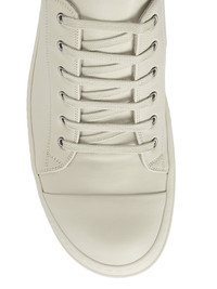 RICK OWENS FW25 CONCORDIANS LOW SNEAKS IN WASHED MILK/MILK/MILK FULL GRAIN COW LEATHER THESE LOW SNEAKS ARE UNDER ANKLE HEIGHT, RISING AT THE BACK AND FEATURE SIX EYELETS, LACES, TOE CAPS AND SHARK-TOOTHED BUMPER SOLES THIS MEDIUMWEIGHT FULL GRAIN COW LEATHER HAS A FLAT AND MATTE SURFACE FINISH AND IS SPECIFICALLY TANNED FOR SHOES WITH AN ABRASION-RESISTANT FINISH THIS TANNERY IS LWG CERTIFIED WITH A BRONZE RATING COLOR: MILK/MILK/MILK MATERIAL: UPPER 100% COW LEATHER TOE 100% CALF LEATHER LINING 100% CALF LEATHER INSOLE 100% CALF LEATHER SOLE 100% THERMOPLASTIC RUBBER SOLE HEIGHT 3.5CM