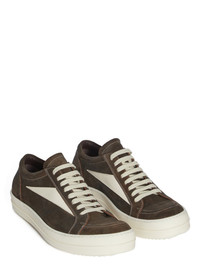 RICK OWENS FW25 CONCORDIANS RUNWAY VINTAGE SNEAKS IN INDIGO/MILK/MILK INDIGO SUEDE AND SUEDE LEATHER THESE VINTAGE SNEAKS ARE UNDER-ANKLE HEIGHT AND HAVE EIGHT EYELETS WITH LACES, TOE CAPS AND SHARK-TOOTHED BUMPER SOLES. THEY FEATURE A TRIANGULAR LEATHER APPLIQUE ON THE SIDE FOOT, A PADDED ANKLE AND CONTRAST STITCHING THIS IS A COMBINATION OF INDIGO SUEDE AND SUEDE LEATHER THIS MEDIUMWEIGHT CROSTA COW SUEDE LEATHER IS MATTE WITH A HAIRY SURFACE TEXTURE. IT IS DYED USING NATURAL INDIGO AND WASHED SEVERAL TIMES TO ACHIEVE ITS FINAL LOOK. IT HAS A NATURAL AND WAXY HAND FEEL ACHIEVED BY DRUMMING THE SKINS WITH WAX SINCE THE INDIGO USED TO DYE THIS LEATHER IS NATURAL, SHADINGS AND COLOR VARIATIONS WILL BE PRESENT. THE COLOR WILL CONTINUE TO EVOLVE AND CHANGE WITH WEAR AND AS IT GET EXPOSED TO LIGHT AND HUMIDITY THIS TANNERY IS LWG CERTIFIED WITH A GOLD RATING COLOR: INDIGO/MILK/MILK MATERIAL: UPPER 100% COW LEATHERLATERAL DETAILS 100% COW LEATHER LINING 100% CALF LEATHER SOLE HEIGHT 3.5CM