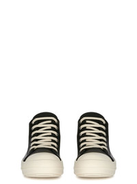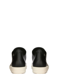 RICK OWENS SS26 TEMPLE LOW SNEAKS IN BLACK/MILK/MILK FULL GRAIN COW LEATHER THESE LOW SNEAKS ARE UNDER ANKLE HEIGHT, RISING AT THE BACK AND FEATURE SIX EYELETS, LACES, TOE CAPS AND SHARK-TOOTHED BUMPER SOLES THIS MEDIUMWEIGHT FULL GRAIN COW LEATHER HAS A FLAT AND MATTE SURFACE FINISH AND IS SPECIFICALLY TANNED FOR SHOES WITH AN ABRASION-RESISTANT FINISH THIS TANNERY IS LWG CERTIFIED WITH A BRONZE RATING COLOR: BLACK/MILK/MILK MATERIAL: UPPER 100% COW LEATHER TOE 100% CALF LEATHER LINING 100% CALF LEATHER INSOLE 100% CALF LEATHER SOLE 100% THERMOPLASTIC RUBBER SOLE HEIGHT 3.5CM
