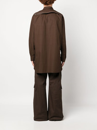 spread-collar oversize shirt Highlights - Cedar brown - Cotton - Overlapping panel - Spread collar - Front button fastening - Long sleeves - Buttoned cuffs - Curved hem Made in Italy Composition Cotton 100% SIZE & FIT Model measurements Height 6 ft 1 in(1.86 m) Bust/Chest 37.79 in(96 cm) Hips 38.58 in(98 cm) Waist 33.85 in(86 cm) FittingInformation Designed to be unstructured, offering a loose fit throughout Made from a midweight non-stretch fabric This piece fits true to size – take your usual size Washing instructions Hand Wash