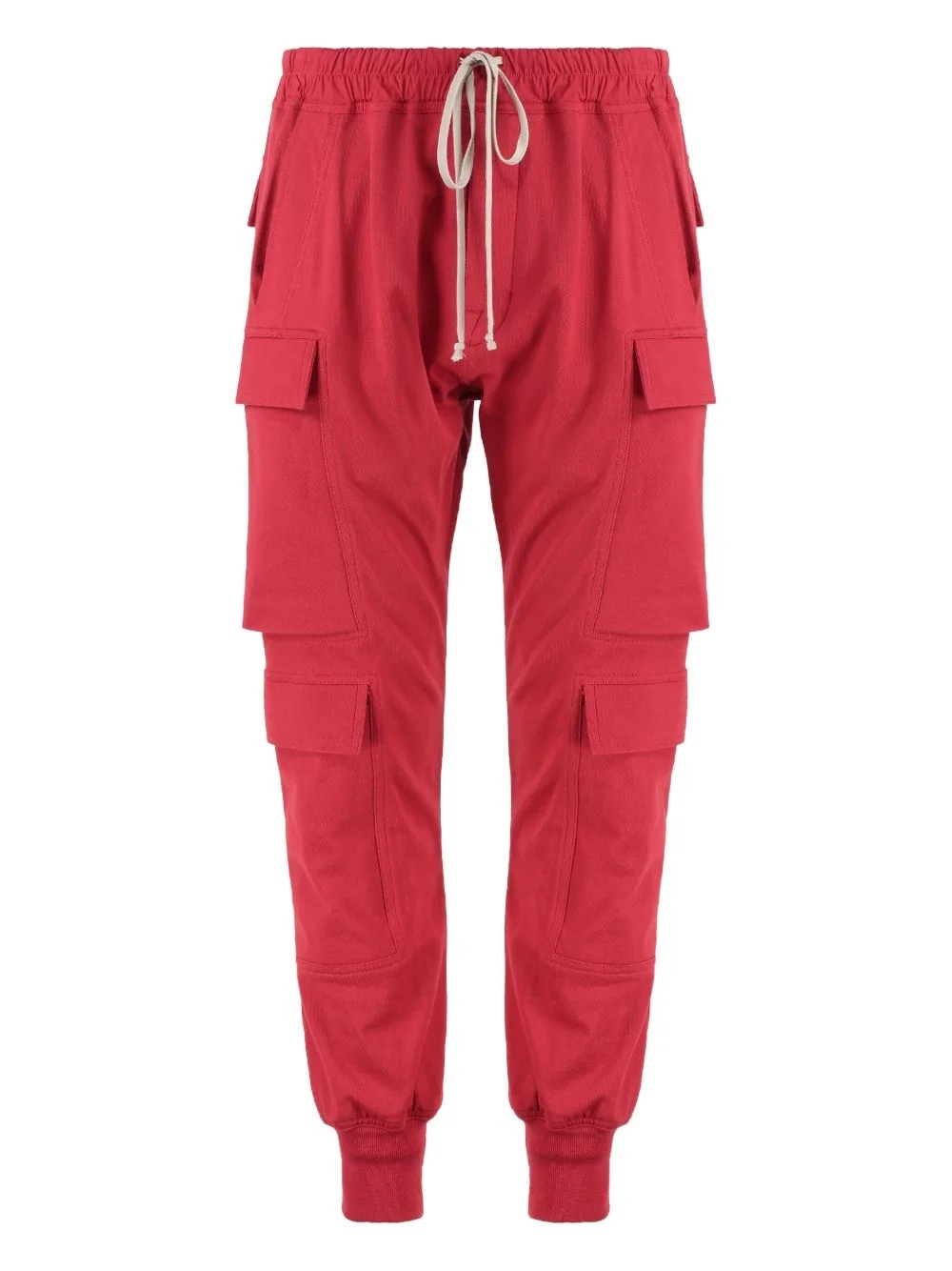 cargo pocket drawstring trousers Highlights - Red - Cargo pockets - Drawstring fastening - Cuffed hems - Stretch cotton - Relaxed fit Made in Italy Composition Cotton 97%, Spandex/Elastane 3% SIZE & FIT FittingInformation Designed with a dropped crotch, offering a loose and relaxed fit Adjust this piece’s waistband to your preference using the drawstring Made from a midweight non-stretch fabric, this piece offers minimal elasticity when worn Washing instructions Read Manufacturer Guidelines