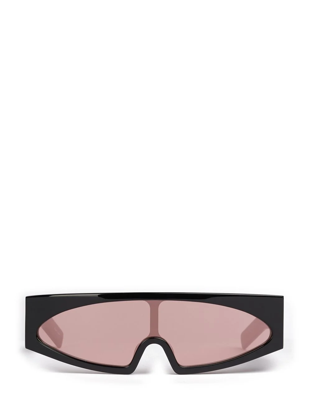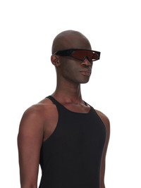 RICK OWENS GENE SUNGLASSES RICK OWENS RETRO FUTURISTIC BLACK RECTANGULAR FRAMED SUNGLASSES FEATURE AN ACETATE FRAME AND ROSE LENSES - COLOR: BLACK, ROSE - FRAME 100% ACETATE - LENSES 100% NYLON -NOT SUITABLE FOR CONVERSION INTO PRESCRIPTION GLASSES