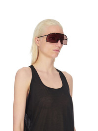 RICK OWENS SHIELDING SUNGLASSES THESE SUNGLASSES FEATURE A BLACK SURGICAL STAINLESS STEEL FRAME, A STRAIGHT-BOTTOMED BROWN LENSE AND A RUBBER NOSE PAD - COLOR: BLACK, BROWN - FRAME: 100% STAINLESS STEEL -LENSES: 100% NYLON -NOT SUITABLE FOR CONVERSION INTO PRESCRIPTION GLASSES