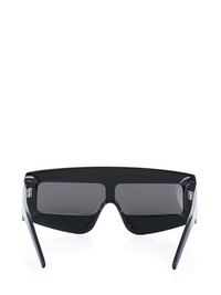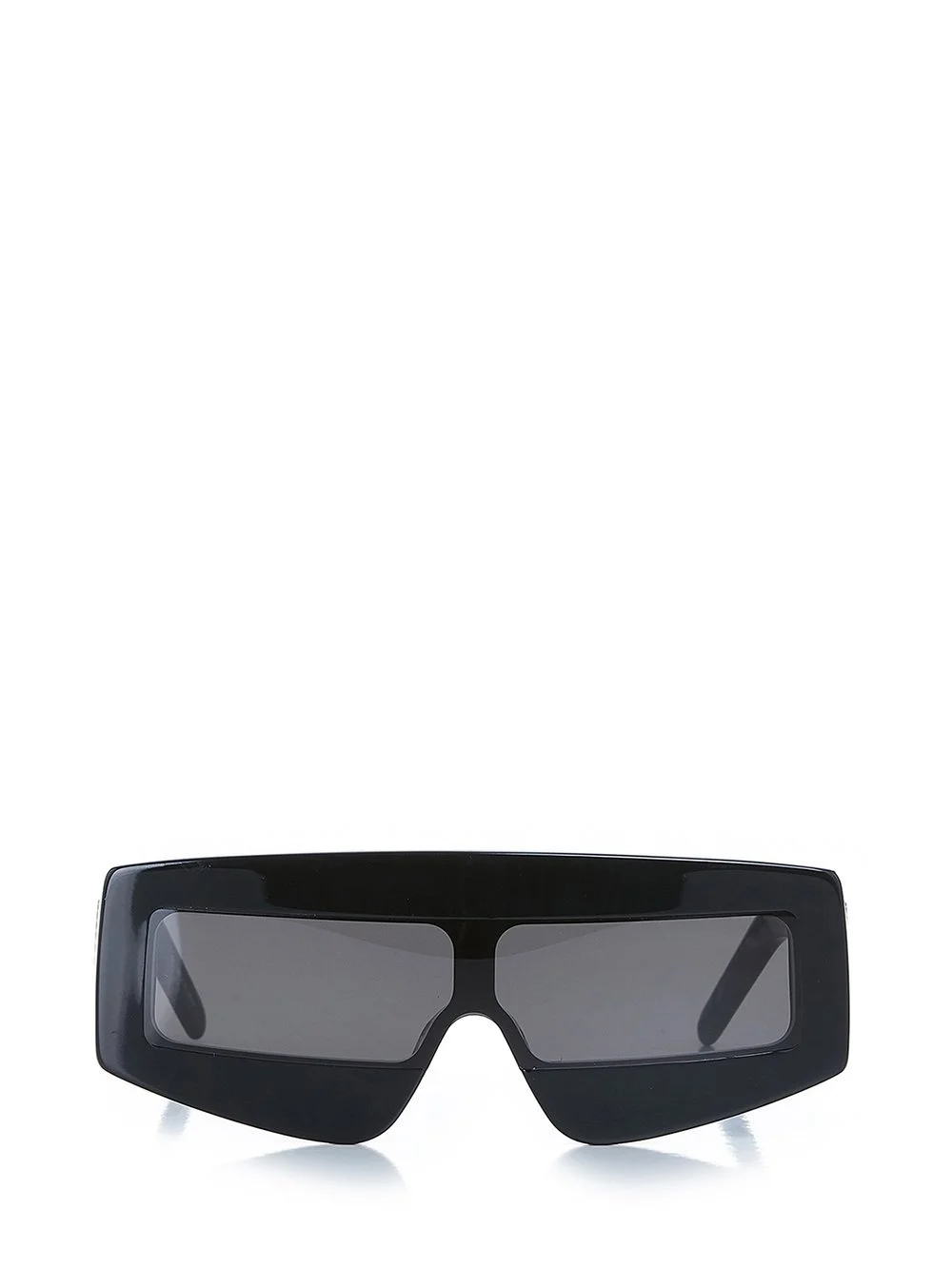 RICK OWENS PHLEG SUNGLASSES THESE PHLEG SUNGLASSES FEATURE A SINGLE RECTANGULAR LENS SURROUNDED BY A WIDER, SLIGHTLY ROUNDED-EDGE FRAME. THEY HAVE WIDE ARMS WITH THE SIGNATURE TRIO OF SILVER RIVETS ON EACH TEMPLE AND RICK OWENS LOGO ON INSIDE RIGHT - COLOR: BLACK - FRAME: 100% ACETATE - LENS: 100% NYLON -NOT SUITABLE FOR CONVERSION INTO PRESCRIPTION GLASSES