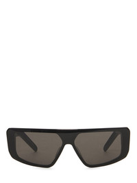 RICK OWENS PERFORMA SUNGLASSES THESE PERFORMA SUNGLASSES FEATURE A SLIM GEOMETRIC BLACK NYLON FRAME AND A SINGLE CUT LENS. THEY HAVE WIDE ARMS WITH THE SIGNATURE TRIO OF SILVER RIVERTS ON EACH TEMPLE AND RICK OWENS LOGO ON INSIDE RIGHT - COLOR: BLACK - MATERIAL: 100% ACETATE - FRAME: 100% NYLON -NOT SUITABLE FOR CONVERSION INTO PRESCRIPTION GLASSES