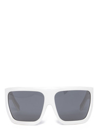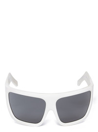 RICK OWENS DAVIS SUNGLASSES IN PEARL AND BLACK THESE DAVIS SUNGLASSES ARE LARGE WRAP AROUND FRAMES WITH GEOMETRIC CURVED LENSES. THEY HAVE THICK ANGLED ARMS AND RICK OWENS LOGO ON INSIDE RIGHT - COLOR: PEARL TEMPLE/BLACK LENS - MATERIAL: FRAME 100% GRILAMID - LENSES: 100% NYLON -NOT SUITABLE FOR CONVERSION INTO PRESCRIPTION GLASSES