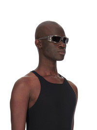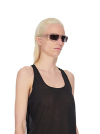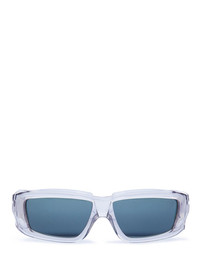 RICK OWENS RICK SUNGLASSES RICK OWENS SUNGLASSES FEATURES A TRANSPARENT DOUBLE INJECTION JP NYLON FRAME AND BLACK LENSES. THIS FRAME IS MEMORY FLEX. THIS BLACK LENS PROVIDES A HIGH LEVEL UV PROTECTION. COLOR: BLACK. FRAME: 100% NYLON. LENS: 100% CR39. MEASURES: 17CM X 5CM X 6CM.