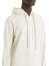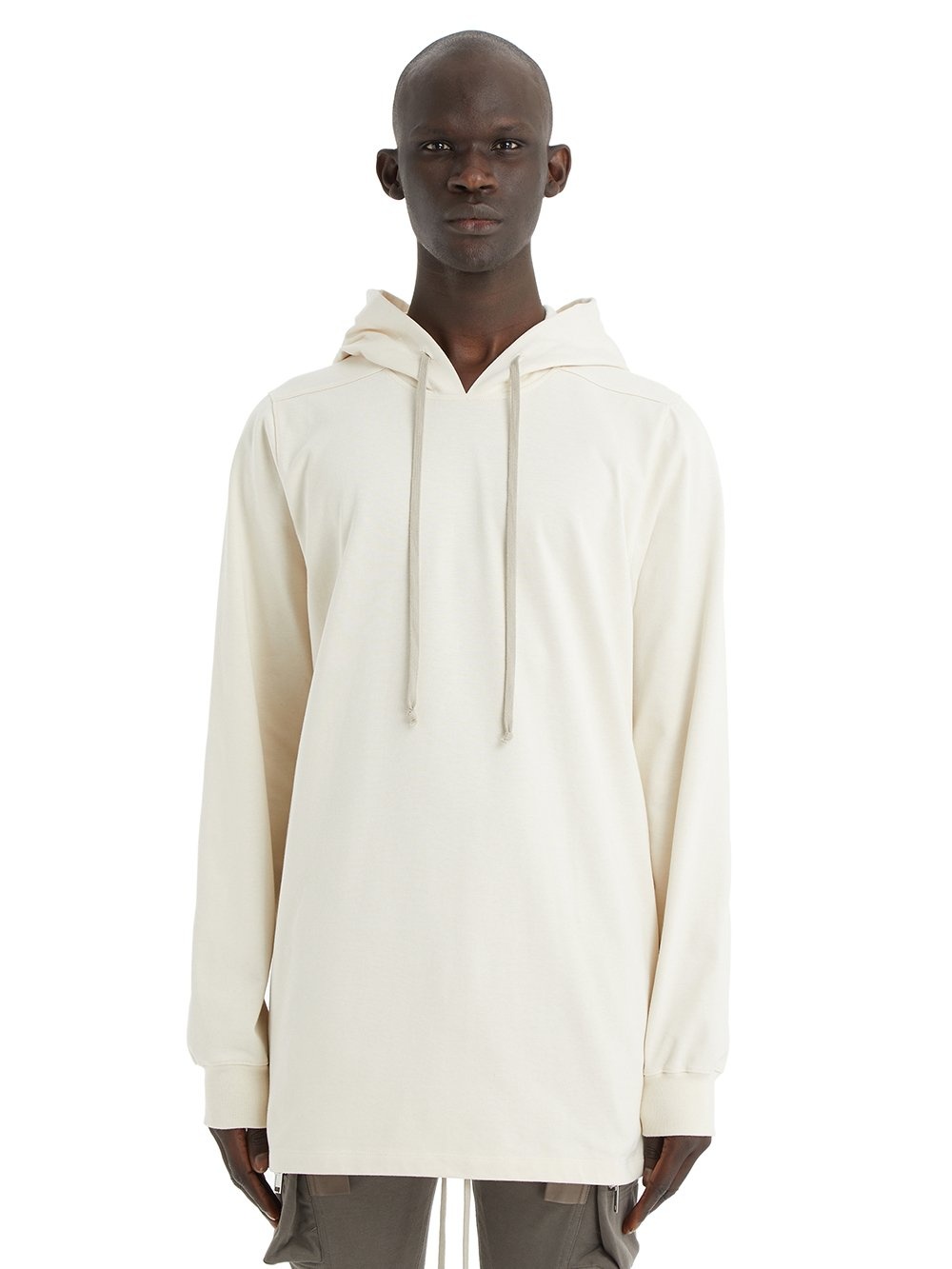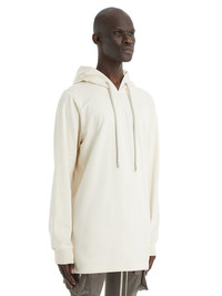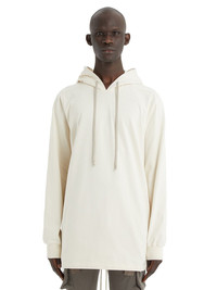 RICK OWENS SS22 FOGACHINE HOODIE IN HEAVY JERSEY THIS HOODIE HAS A BELOW THE HIP LENGTH WITH LONG SLEEVES. IT FEATURES A DRAWSTRING HOOD, RIB CUFFS, AND HAS SIGNATURE LEVEL SEAMS ON THE SHOULDERS AND SINGLE SEAM RUNNING DOWN THE CENTRE BACK SPINE THIS HEAVYWEIGHT JERSEY IS MADE USING GOTS CERTIFIED ORGANIC COTTON BECAUSE IT MEANS THE NATURAL FIBER IS GROWN WITHOUT HARMFUL CHEMICALS, WHICH LEAVES OUR SOIL, AIR AND WATER CLEANER FROM CONTAMINATES. WE STRIVE TO KEEP OUR PRODUCTION AS LOCAL AS POSSIBLE. THE FULL MANUFACTURING CYCLE OF THIS PRODUCT, FROM THE MATERIAL KNITTING TO SEWING AND FINISHING, WAS UNDERTAKEN CLOSE TO OUR HOME BASE IN CONCORDIA, ITALY - COLOR: NATURAL - MATERIAL: 100% COTTON - MODEL IS WEARING SIZE S - MODEL IS 189 CM TALL