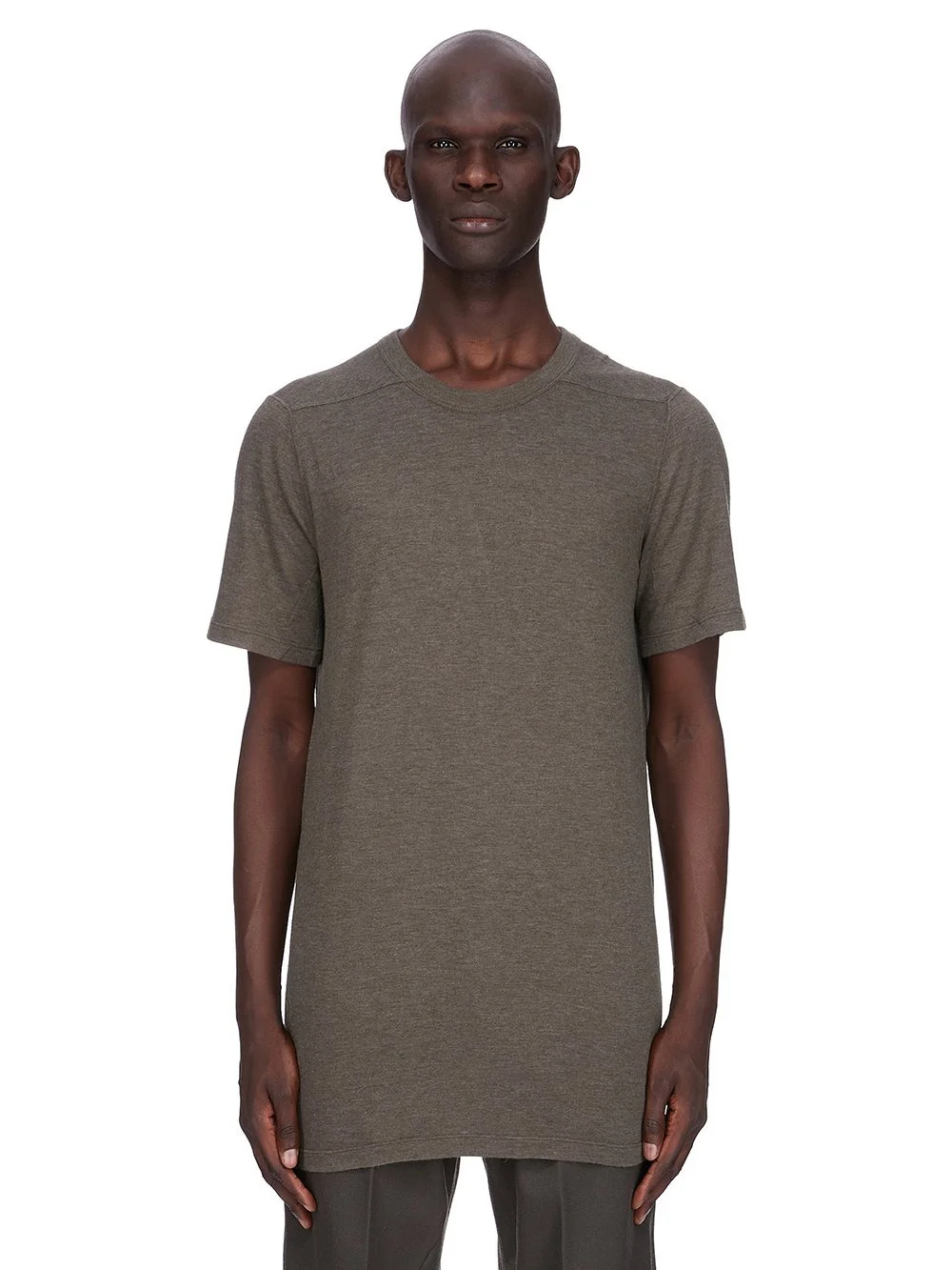 RICK OWENS FW25 CONCORDIANS LEVEL T IN BOSCO RAININO JERSEY THIS LEVEL T IS HIP LENGTH WITH SHORT SLEEVES AND A RIBBED ROUND CREWNECK. IT FEATURES THE SIGNATURE LEVEL SHOULDER SEAMS AND SINGLE SEAM RUNNING DOWN THE CENTRE BACK SPINE THIS MEDIUMWEIGHT AND FLUID VISCOSE AND WOOL BLEND JERSEY HAS A SOFT, WARM HANDFEEL AND A SLIGHTLY HAIRY SURFACE TEXTURE WE STRIVE TO KEEP OUR PRODUCTION AS LOCAL AS POSSIBLE. THE FULL MANUFACTURING CYCLE OF THIS PRODUCT, FROM THE MATERIAL KNITTING TO SEWING AND FINISHING, WAS UNDERTAKEN CLOSE TO OUR HOME BASE IN CONCORDIA, ITALY THIS JERSEY IS MADE FROM FSC® CERTIFIED VISCOSE AND RWS CERTIFIED WOOL COLOR: BOSCO MATERIAL: 30% VISCOSE + 30% NYLON + 20% ANGORA + 20% WOOL MODEL IS 189CM TALL MODEL WEARS SIZE S