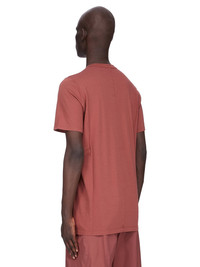 RICK OWENS FW25 CONCORDIANS LEVEL T IN ROSEWOOD CLASSIC COTTON JERSEY THIS LEVEL T IS HIP LENGTH WITH SHORT SLEEVES AND A RIBBED ROUND CREWNECK. IT FEATURES THE SIGNATURE LEVEL SHOULDER SEAMS AND SINGLE SEAM RUNNING DOWN THE CENTRE BACK SPINE THIS MEDIUMWEIGHT CLASSIC COTTON JERSEY IS COMPACT WITH A DRY HANDFEEL THIS JERSEY IS MADE USING GOTS CERTIFIED ORGANIC COTTON WHICH MEANS THE NATURAL FIBER IS GROWN WITHOUT HARMFUL CHEMICALS, LEAVING OUR SOIL, AIR AND WATER CLEANER FROM CONTAMINATES WE STRIVE TO KEEP OUR PRODUCTION AS LOCAL AS POSSIBLE. THE FULL MANUFACTURING CYCLE OF THIS PRODUCT, FROM THE MATERIAL KNITTING TO SEWING AND FINISHING, WAS UNDERTAKEN CLOSE TO OUR HOME BASE IN CONCORDIA, ITALY COLOR: ROSEWOOD MATERIAL: 100% COTTON MODEL IS 189CM TALL MODEL WEARS SIZE S