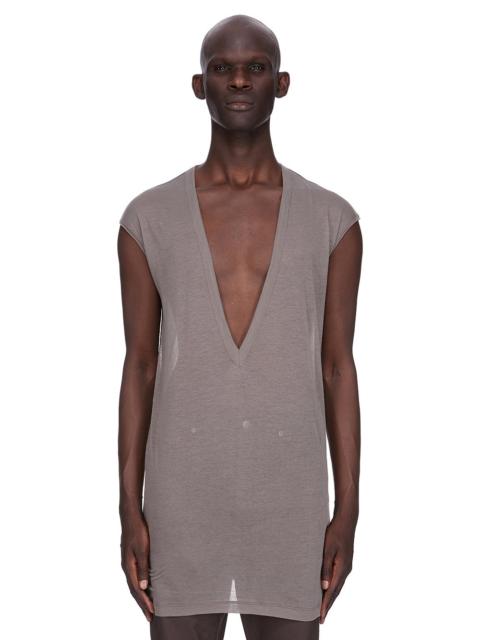 RICK OWENS FW25 CONCORDIANS DYLAN T IN BLACK UNSTABLE COTTON THIS DYLAN T IS BELOW HIP LENGTH, IT HAS AN EXTREME DEEP V NECK WITH WIDE TANK SHOULDERS WITH REINFORCED RAW CUT ARMHOLES. IT FEATURES THE SIGNATURE SINGLE SEAM RUNNING DOWN THE CENTRE BACK SPINE. THIS LIGHTWEIGHT COTTON JERSEY IS SEMI-TRANSPARENT WITH A SOFT HANDFEEL. THIS JERSEY IS MADE USING GOTS CERTIFIED ORGANIC COTTON WHICH MEANS THE NATURAL FIBER IS GROWN WITHOUT HARMFUL CHEMICALS, LEAVING OUR SOIL, AIR AND WATER CLEANER FROM CONTAMINATES. WE STRIVE TO KEEP OUR PRODUCTION AS LOCAL AS POSSIBLE. THE FULL MANUFACTURING CYCLE OF THIS PRODUCT, FROM THE MATERIAL KNITTING TO SEWING AND FINISHING, WAS UNDERTAKEN CLOSE TO OUR HOME BASE IN CONCORDIA, ITALY. COLOR: BLACK MATERIAL: 100% COTTON MODEL IS 189CM TALL MODEL WEARS SIZE S