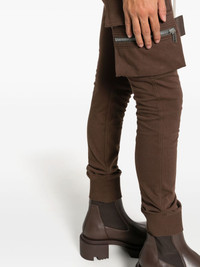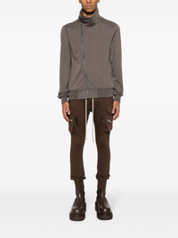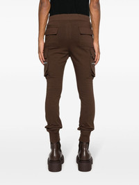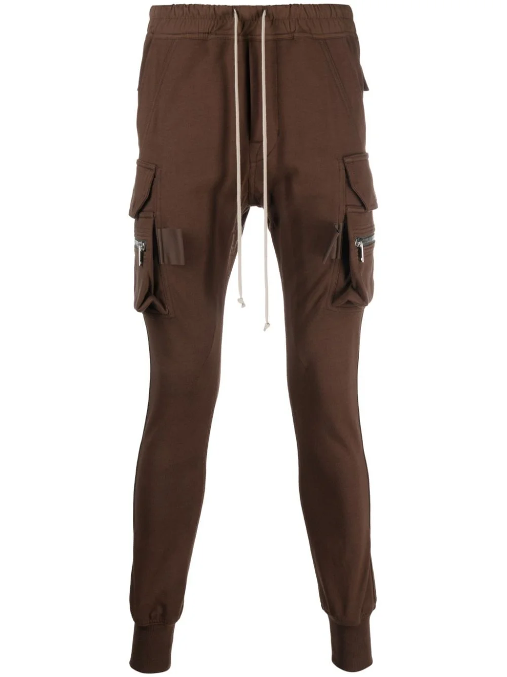 drawstring drop-crotch track pants Highlights - Chocolate brown - Cotton - Jersey texture - Tapered leg - Elasticated drawstring waistband - Two side slit pockets - Two side cargo pockets - Side two-way zip fastening - Two rear flap pockets - Elasticated ankles Made in Italy Composition Cotton 100% SIZE & FIT Model measurements Height 6 ft 2 in(1.89 m) Bust/Chest 35.03 in(89 cm) Hips 38.18 in(97 cm) Waist 29.92 in(76 cm) Measurement INSIDE LEG 29.52 in(75 cm) FRONT RISE 12.59 in(32 cm) WAIST 30.7 in(78 cm) FittingInformation Designed for a slim tapered leg, offering a close fit that sits just away from the leg with a closer fit towards the ankle Adjust this piece’s waistband to your preference using the drawstring Made from a midweight non-stretch fabric, this piece offers minimal elasticity when worn This piece fits true to size – take your usual size Washing instructions Hand Wash