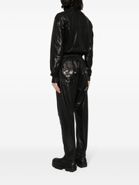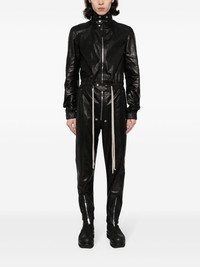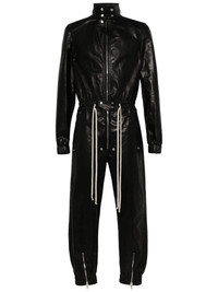 tapered-leg leather jumpsuit Highlights - Black - Calf leather - Zip details - Silver-tone hardware - Stand-up collar - Front press-stud and zip fastening - Long sleeves - Elasticated cuffs - Drawstring waist - Two rear flap pockets - Tapered leg - Elasticated hem Imported Composition Lining: Cupro 100% Outer: Calf Leather 100% SIZE & FIT Model measurements Height 6 ft 2 in(1.87 m) Bust/Chest 33.07 in(84 cm) Hips 35.43 in(90 cm) Waist 26.77 in(68 cm) FittingInformation Designed for a slim fit, offering a comfortable fit that sits just away from the body The elasticated hem at the ankle allows for movement and a comfortable fit Firm leather offering little flexibility to maintain its durability and sturdiness This piece fits true to size – take your usual size Washing instructions Dry Clean Only