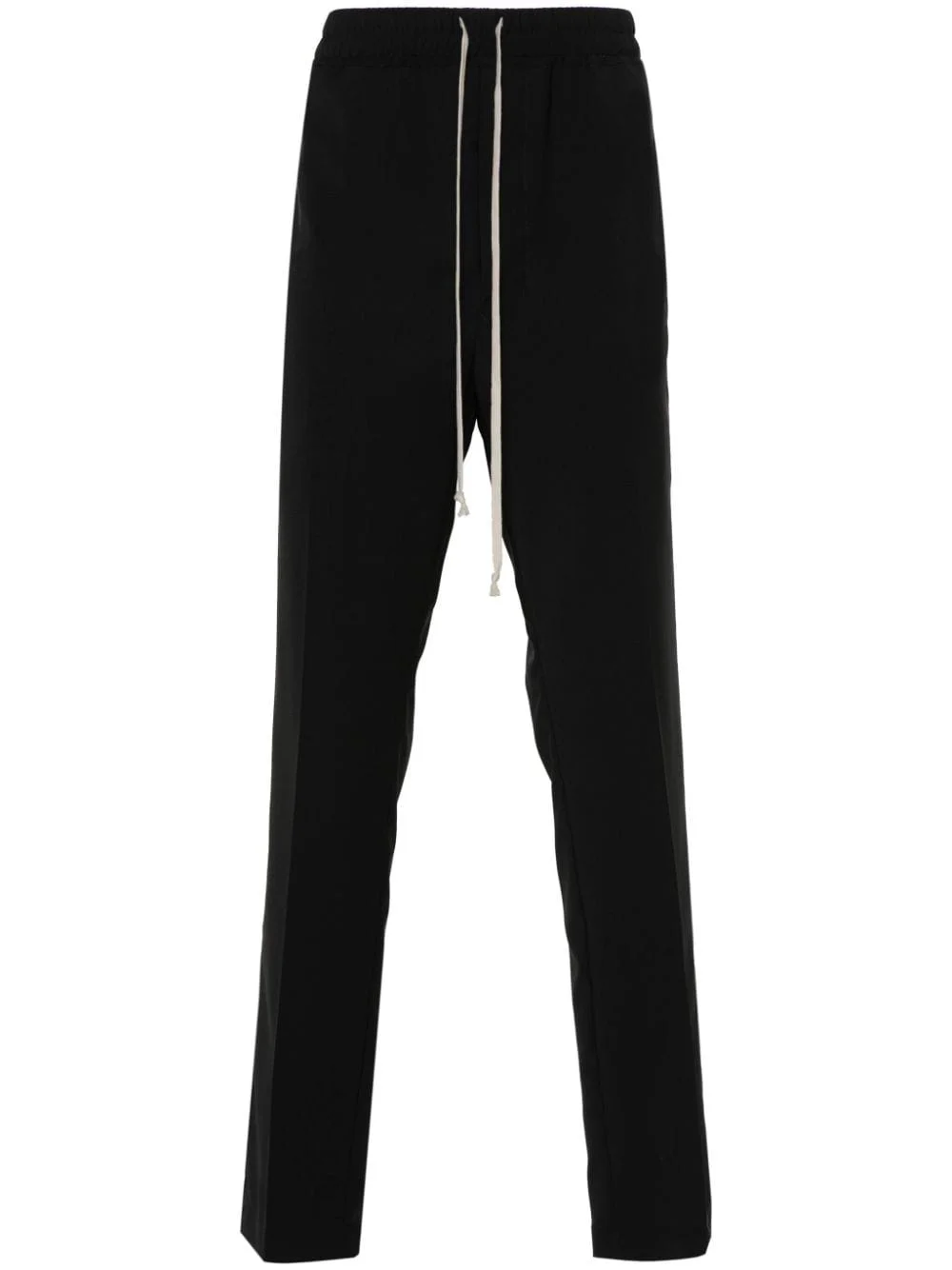 Drawstring Slim Long tapered trousers Highlights - Black - Virgin wool - Tapered leg - Elasticated drawstring waistband - Pressed crease - Two side inset pockets - Two rear flap pockets Made in Italy Composition Virgin Wool 100% SIZE & FIT Model measurements Height 6 ft 2 in(1.87 m) Bust/Chest 36.22 in(92 cm) Hips 37 in(94 cm) Waist 27.95 in(71 cm) FittingInformation Designed with a dropped crotch, offering a loose and relaxed fit The elasticated waist allows for a comfortable fit Made from a midweight non-stretch fabric, this piece offers minimal elasticity when worn This piece fits true to size – take your usual size Washing instructions Dry Clean Only