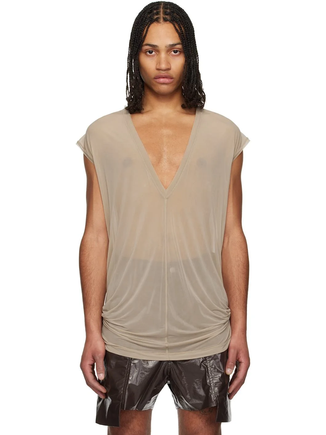 Semi-sheer stretch cupro jersey T-shirt. · Plunging V-neck · Central seam at front and back Supplier color: Taupe 92% cupro, 8% elastane. Made in Italy 251232M213021