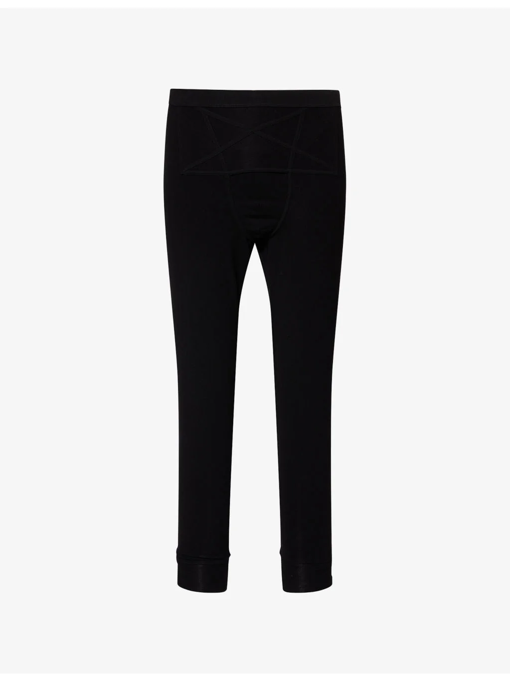 PRODUCT DETAILS - Rick Owens jersey trousers - 65% viscose, 14% wool, 14% nylon, 7% elastane - Slim fit, elasticated waist, topstitched star-shaped detailing at front, elasticated cuffs - Hand wash cold - Made in Italy - Model is 6ft 2in/1.88m and wears a size UK 32 - Lightweight, stretchy Ref: R04514134