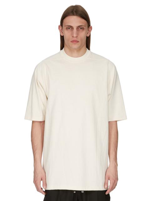 RICK OWENS SS25 HOLLYWOOD JUMBO SS T IN BLACK HEAVY JERSEY THIS JUMBO SS T IS BELOW-HIP LENGTH WITH AN OVERSIZED FIT. IT HAS A RIBBED CREWNECK AND ELBOW-LENGTH SHORT SLEEVES. IT FEATURES SIGNATURE FRONT LEVEL SHOULDER SEAMS AND A CENTER BACK SEAM THIS HEAVYWEIGHT JERSEY IS COMPACT WITH A DRY HANDFEEL. THIS JERSEY IS MADE USING GOTS CERTIFIED ORGANIC COTTON WHICH MEANS THE NATURAL FIBER IS GROWN WITHOUT HARMFUL CHEMICALS, LEAVING OUR SOIL, AIR AND WATER CLEANER FROM CONTAMINATES COLOR: BLACK MATERIAL: 100% COTTON MODEL IS 189CM TALL MODEL WEARS SIZE S