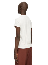 RICK OWENS FW24 PORTERVILLE SHORT LEVEL T IN MILK CLASSIC COTTON JERSEY THIS SHORT LEVEL T IS ABOVE HIP-LENGTH WITH SHORT SLEEVES AND A RIBBED CREWNECK. IT FEATURES SIGNATURE FRONT LEVEL SHOULDER SEAMS AND SINGLE SEAM RUNNING DOWN THE CENTRE BACK SPINE THIS MEDIUMWEIGHT CLASSIC COTTON JERSEY IS COMPACT WITH A DRY HANDFEEL. THIS JERSEY IS MADE USING GOTS CERTIFIED ORGANIC COTTON WHICH MEANS THE NATURAL FIBER IS GROWN WITHOUT HARMFUL CHEMICALS, LEAVING OUR SOIL, AIR AND WATER CLEANER FROM CONTAMINATES WE STRIVE TO KEEP OUR PRODUCTION AS LOCAL AS POSSIBLE. THE FULL MANUFACTURING CYCLE OF THIS PRODUCT, FROM THE MATERIAL KNITTING TO SEWING AND FINISHING, WAS UNDERTAKEN CLOSE TO OUR HOME BASE IN CONCORDIA, ITALY. - COLOR: MILK - MATERIAL: 100% COTTON - MODEL IS 189CM TALL - MODEL WEARS SIZE S
