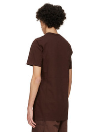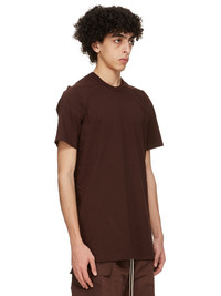 RICK OWENS SS25 HOLLYWOOD LEVEL T IN MAHOGANY CLASSIC COTTON JERSEY THIS LEVEL T IS HIP LENGTH WITH SHORT SLEEVES AND A RIBBED ROUND CREWNECK. IT FEATURES THE SIGNATURE LEVEL SHOULDER SEAMS AND SINGLE SEAM RUNNING DOWN THE CENTER BACK SPINE THIS MEDIUMWEIGHT CLASSIC COTTON JERSEY IS COMPACT WITH A DRY HANDFEEL. THIS JERSEY IS MADE USING GOTS CERTIFIED ORGANIC COTTON WHICH MEANS THE NATURAL FIBER IS GROWN WITHOUT HARMFUL CHEMICALS, LEAVING OUR SOIL, AIR AND WATER CLEANER FROM CONTAMINATES WE STRIVE TO KEEP OUR PRODUCTION AS LOCAL AS POSSIBLE. THE FULL MANUFACTURING CYCLE OF THIS PRODUCT, FROM THE MATERIAL KNITTING TO SEWING AND FINISHING, WAS UNDERTAKEN CLOSE TO OUR HOME BASE IN CONCORDIA, ITALY. COLOR: MAHOGANY MATERIAL: 100% COTTON MODEL IS 189CM TALL MODEL WEARS SIZE S