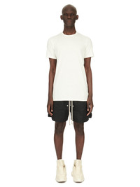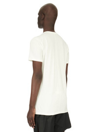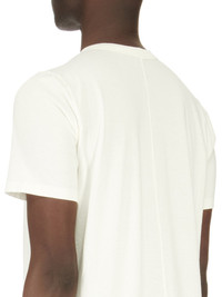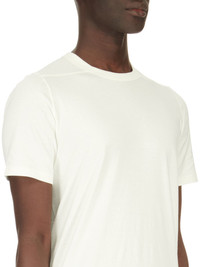 RICK OWENS SS24 LIDO LEVEL T IN MILK CLASSIC COTTON JERSEY THIS LEVEL T IS BELOW HIP LENGTH WITH SHORT SLEEVES AND A RIBBED ROUND CREWNECK. IT FEATURES THE SIGNATURE LEVEL SHOULDER SEAMS AND SINGLE SEAM RUNNING DOWN THE CENTRE BACK SPINE THIS MEDIUMWEIGHT CLASSIC COTTON JERSEY IS COMPACT WITH A DRY HANDFEEL. THIS JERSEY IS MADE USING GOTS CERTIFIED ORGANIC COTTON WHICH MEANS THE NATURAL FIBER IS GROWN WITHOUT HARMFUL CHEMICALS, LEAVING OUR SOIL, AIR AND WATER CLEANER FROM CONTAMINATES WE STRIVE TO KEEP OUR PRODUCTION AS LOCAL AS POSSIBLE. THE FULL MANUFACTURING CYCLE OF THIS PRODUCT, FROM THE MATERIAL KNITTING TO SEWING AND FINISHING, WAS UNDERTAKEN CLOSE TO OUR HOME BASE IN CONCORDIA, ITALY. - COLOR: MILK - MATERIAL: 100% COTTON - MODEL IS 189CM TALL - MODEL WEARS SIZE S