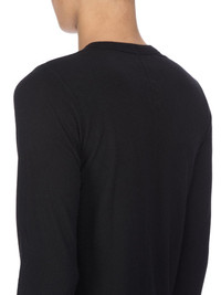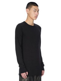 RICK OWENS FW25 CONCORDIANS BASIC LS T IN BLACK RAININO JERSEY THIS BASIC LS T IS BELOW HIP LENGTH WITH LONG SLEEVES. IT HAS A RIBBED ROUND NECK AND CUFFS AND A RAW CUT HEM. IT FEATURES THE SIGNATURE SINGLE SEAM RUNNING DOWN THE CENTRE BACK SPINE THIS MEDIUMWEIGHT AND FLUID VISCOSE AND WOOL BLEND JERSEY HAS A SOFT, WARM HANDFEEL AND A SLIGHTLY HAIRY SURFACE TEXTURE WE STRIVE TO KEEP OUR PRODUCTION AS LOCAL AS POSSIBLE. THE FULL MANUFACTURING CYCLE OF THIS PRODUCT, FROM THE MATERIAL KNITTING TO SEWING AND FINISHING, WAS UNDERTAKEN CLOSE TO OUR HOME BASE IN CONCORDIA, ITALY THIS JERSEY IS MADE FROM FSC® CERTIFIED VISCOSE AND RWS CERTIFIED WOOL COLOR: BLACK MATERIAL: 30% VISCOSE + 30% NYLON + 20% ANGORA + 20% WOOL MODEL IS 189CM TALL MODEL WEARS SIZE S