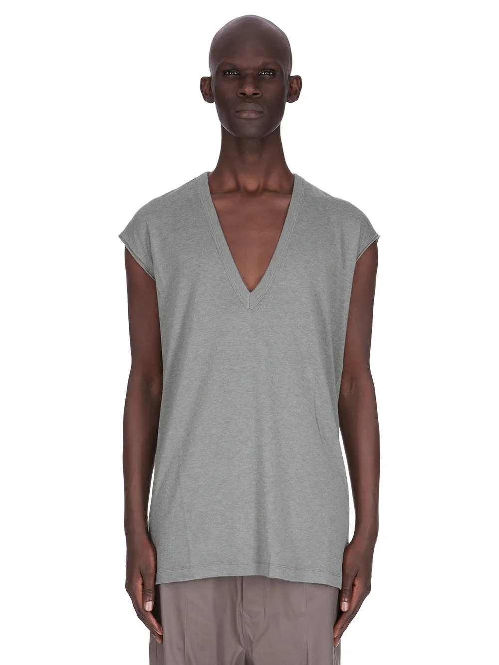 RICK OWENS FW25 CONCORDIANS DEEP V SL T IN WASHED INDIGO RAININO JERSEY THIS DEEP V SL T IS HIP LENGTH, IT HAS A DEEP V NECK WITH WIDE TANK SHOULDERS WITH REINFORCED RAW CUT ARMS. IT FEATURES THE SIGNATURE SINGLE SEAM RUNNING DOWN THE CENTRE BACK SPINE THIS MEDIUMWEIGHT AND FLUID VISCOSE AND WOOL BLEND JERSEY HAS A SOFT, WARM HANDFEEL AND A SLIGHTLY HAIRY SURFACE TEXTURE. WE STRIVE TO KEEP OUR PRODUCTION AS LOCAL AS POSSIBLE. THE FULL MANUFACTURING CYCLE OF THIS PRODUCT, FROM THE MATERIAL KNITTING TO SEWING AND FINISHING, WAS UNDERTAKEN CLOSE TO OUR HOME BASE IN CONCORDIA, ITALY. THIS JERSEY IS MADE FROM CERTIFIED VISCOSE AND RWS CERTIFIED WOOL. COLOR: WASHED INDIGO MATERIAL: 30% VISCOSE + 30% NYLON + 20% ANGORA + 20% WOOL MODEL IS 189CM TALL MODEL WEARS SIZE S