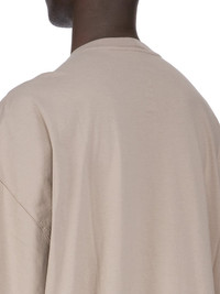 RICK OWENS SS25 HOLLYWOOD TOMMY T IN FLESH CLASSIC COTTON JERSEY THIS TOMMY T IS BELOW-HIP LENGTH WITH A JUMBO OVERSIZED FIT. IT HAS WIDE, SHORT SLEEVES WITH A DROPPED ARMHOLE AND A RIBBED CREWNECK. IT FEATURES SIGNATURE FRONT LEVEL SHOULDER SEAMS THIS MEDIUMWEIGHT CLASSIC COTTON JERSEY IS COMPACT WITH A DRY HANDFEEL. THIS JERSEY IS MADE USING GOTS CERTIFIED ORGANIC COTTON WHICH MEANS THE NATURAL FIBER IS GROWN WITHOUT HARMFUL CHEMICALS, LEAVING OUR SOIL, AIR AND WATER CLEANER FROM CONTAMINATES WE STRIVE TO KEEP OUR PRODUCTION AS LOCAL AS POSSIBLE. THE FULL MANUFACTURING CYCLE OF THIS PRODUCT, FROM THE MATERIAL KNITTING TO SEWING AND FINISHING, WAS UNDERTAKEN CLOSE TO OUR HOME BASE IN CONCORDIA, ITALY. COLOR: FLESH MATERIAL: 100% COTTON MODEL IS 189CM TALL ITEM IS AVAILABLE IN ONE SIZE