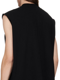 RICK OWENS FW24 PORTERVILLE SPLINTERED TARP T IN BLACK HEAVY JERSEY THIS SPLINTERED TARP T IS BELOW HIP-LENGTH WITH A LOOSE FIT. IT IS SLEEVELESS WITH WIDE SHOULDERS AND A RIBBED CREWNECK. IT HAS SIGNATURE FRONT LEVEL SHOULDER SEAMS AND SINGLE SEAM RUNNING DOWN THE CENTRE BACK SPINE. IT FEATURES THE SPLINTERED MOTIVO, WITH SEAM LINES DESCENDING FROM THE NECK TO A BLUNT POINT AT THE WAIST AND ACROSS THE CHEST, AND SLOPING DOWN THE SIDE BODY, WRAPPING TO THE HEM THIS HEAVYWEIGHT JERSEY IS COMPACT WITH A DRY HANDFEEL. THIS JERSEY IS MADE USING GOTS CERTIFIED ORGANIC COTTON WHICH MEANS THE NATURAL FIBER IS GROWN WITHOUT HARMFUL CHEMICALS, LEAVING OUR SOIL, AIR AND WATER CLEANER FROM CONTAMINATES - COLOR: BLACK - MATERIAL: 100% COTTON - MODEL IS 189CM TALL - MODEL WEARS SIZE S