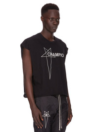 CHAMPION X RICK OWENS SS25 MICRO TATLIN T IN BLACK COTTON JERSEY IT FEATURES A 3D EMBROIDERED SIGNATURE CHAMPION X RICK OWENS PENTAGRAM LOGO ON FRONT THIS MEDIUMWEIGHT CLASSIC COTTON JERSEY IS COMPACT WITH A DRY HANDFEEL THIS JERSEY IS MADE USING CERTIFIED ORGANIC COTTON WHICH MEANS THE NATURAL FIBER IS GROWN WITHOUT HARMFUL CHEMICALS, LEAVING OUR SOIL, AIR AND WATER CLEANER FROM CONTAMINATES COLOR: BLACKMATERIAL: 100% COTTON INSERTS 95% COTTON + 5% ELASTANE MODEL WEARS SIZE M MODEL IS 189CM TALL