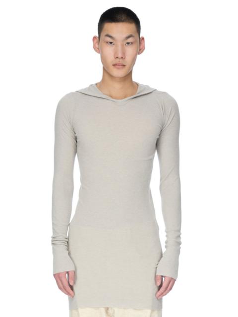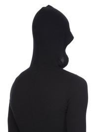 RICK OWENS FW25 CONCORDIANS HOODED RIB LS T IN BLACK RAININO RIB JERSEY THIS HOODED RIB LS T IS BELOW HIP LENGTH WITH A SLIM FIT AND LONG SLEEVES AND A HOOD. IT HAS A RIBBED NECKLINE, RAW CUT HEM AND CUFFS, AND FEATURES THE SIGNATURE SINGLE SEAM RUNNING DOWN CENTRE BACK SPINE THIS MEDIUMWEIGHT AND FLUID VISCOSE AND WOOL BLEND RIB JERSEY HAS A SOFT, WARM HANDFEEL AND A SLIGHTLY HAIRY SURFACE TEXTURE WE STRIVE TO KEEP OUR PRODUCTION AS LOCAL AS POSSIBLE. THE FULL MANUFACTURING CYCLE OF THIS PRODUCT, FROM THE MATERIAL KNITTING TO SEWING AND FINISHING, WAS UNDERTAKEN CLOSE TO OUR HOME BASE IN CONCORDIA, ITALY THIS JERSEY IS MADE FROM FSC® CERTIFIED VISCOSE AND RWS CERTIFIED WOOL COLOR: BLACK MATERIAL: 30% VISCOSE + 30% NYLON + 20% ANGORA + 20% WOOL MODEL IS 189CM TALL MODEL WEARS SIZE S