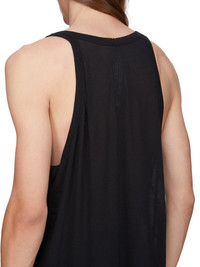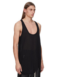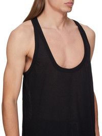 RICK OWENS SS25 HOLLYWOOD RUNWAY LO CUT TANK IN BLACK UNSTABLE COTTON THIS LOW CUT TANK IS BELOW-HIP LENGTH. IT IS SLEEVELESS, WITH SLIM TANK STRAPS, AND A NECKLINE THAT DIPS LOW ON THE CHEST, BACK, AND UNDER THE ARM. IT HAS THE SIGNATURE SEAM RUNNING DOWN THE CENTRE BACK SPINE THIS LIGHTWEIGHT COTTON JERSEY IS SEMI-TRANSPARENT WITH A SOFT HANDFEEL. THIS JERSEY IS MADE USING GOTS CERTIFIED ORGANIC COTTON WHICH MEANS THE NATURAL FIBER IS GROWN WITHOUT HARMFUL CHEMICALS, LEAVING OUR SOIL, AIR AND WATER CLEANER FROM CONTAMINATES WE STRIVE TO KEEP OUR PRODUCTION AS LOCAL AS POSSIBLE. THE FULL MANUFACTURING CYCLE OF THIS PRODUCT, FROM THE MATERIAL KNITTING TO SEWING AND FINISHING, WAS UNDERTAKEN CLOSE TO OUR HOME BASE IN CONCORDIA, ITALY COLOR: BLACK MATERIAL: 100% COTTON MODEL IS 189CM TALL MODEL WEARS SIZE S