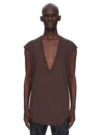 RICK OWENS FW25 CONCORDIANS RUNWAY DYLAN T IN DARKDUST CLASSIC COTTON JERSEY THIS DYLAN T IS BELOW HIP LENGTH, IT HAS AN EXTREME DEEP V NECK WITH WIDE TANK SHOULDERS WITH REINFORCED RAW CUT ARMHOLES. IT FEATURES THE SIGNATURE SINGLE SEAM RUNNING DOWN THE CENTRE BACK SPINE THIS MEDIUMWEIGHT CLASSIC COTTON JERSEY IS COMPACT WITH A DRY HANDFEEL THIS JERSEY IS MADE USING GOTS CERTIFIED ORGANIC COTTON WHICH MEANS THE NATURAL FIBER IS GROWN WITHOUT HARMFUL CHEMICALS, LEAVING OUR SOIL, AIR AND WATER CLEANER FROM CONTAMINATES WE STRIVE TO KEEP OUR PRODUCTION AS LOCAL AS POSSIBLE. THE FULL MANUFACTURING CYCLE OF THIS PRODUCT, FROM THE MATERIAL KNITTING TO SEWING AND FINISHING, WAS UNDERTAKEN CLOSE TO OUR HOME BASE IN CONCORDIA, ITALY COLOR: DARKDUST MATERIAL: 100% COTTON MODEL IS 189CM TALL MODEL WEARS SIZE S