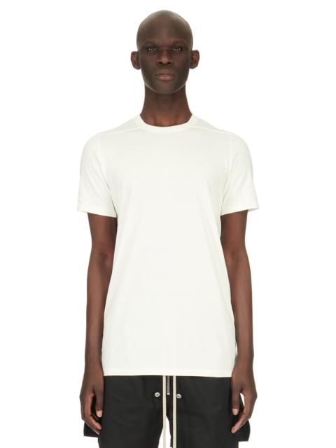 RICK OWENS SS24 LIDO LEVEL T IN DUSTY PINK CLASSIC COTTON JERSEY THIS LEVEL T IS BELOW HIP LENGTH WITH SHORT SLEEVES AND A RIBBED ROUND CREWNECK. IT FEATURES THE SIGNATURE LEVEL SHOULDER SEAMS AND SINGLE SEAM RUNNING DOWN THE CENTRE BACK SPINE THIS MEDIUMWEIGHT CLASSIC COTTON JERSEY IS COMPACT WITH A DRY HANDFEEL. THIS JERSEY IS MADE USING GOTS CERTIFIED ORGANIC COTTON WHICH MEANS THE NATURAL FIBER IS GROWN WITHOUT HARMFUL CHEMICALS, LEAVING OUR SOIL, AIR AND WATER CLEANER FROM CONTAMINATES WE STRIVE TO KEEP OUR PRODUCTION AS LOCAL AS POSSIBLE. THE FULL MANUFACTURING CYCLE OF THIS PRODUCT, FROM THE MATERIAL KNITTING TO SEWING AND FINISHING, WAS UNDERTAKEN CLOSE TO OUR HOME BASE IN CONCORDIA, ITALY. - COLOR: DUSTY PINK - MATERIAL: 100% COTTON - MODEL IS 189CM TALL - MODEL WEARS SIZE S