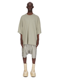 RICK OWENS SS25 HOLLYWOOD TOMMY T IN CELADON CLASSIC COTTON JERSEY THIS TOMMY T IS BELOW-HIP LENGTH WITH A JUMBO OVERSIZED FIT. IT HAS WIDE, SHORT SLEEVES WITH A DROPPED ARMHOLE AND A RIBBED CREWNECK. IT FEATURES SIGNATURE FRONT LEVEL SHOULDER SEAMS THIS MEDIUMWEIGHT CLASSIC COTTON JERSEY IS COMPACT WITH A DRY HANDFEEL. THIS JERSEY IS MADE USING GOTS CERTIFIED ORGANIC COTTON WHICH MEANS THE NATURAL FIBER IS GROWN WITHOUT HARMFUL CHEMICALS, LEAVING OUR SOIL, AIR AND WATER CLEANER FROM CONTAMINATES WE STRIVE TO KEEP OUR PRODUCTION AS LOCAL AS POSSIBLE. THE FULL MANUFACTURING CYCLE OF THIS PRODUCT, FROM THE MATERIAL KNITTING TO SEWING AND FINISHING, WAS UNDERTAKEN CLOSE TO OUR HOME BASE IN CONCORDIA, ITALY. COLOR: CELADON MATERIAL: 100% COTTON MODEL IS 189CM TALL ITEM IS AVAILABLE IN ONE SIZE
