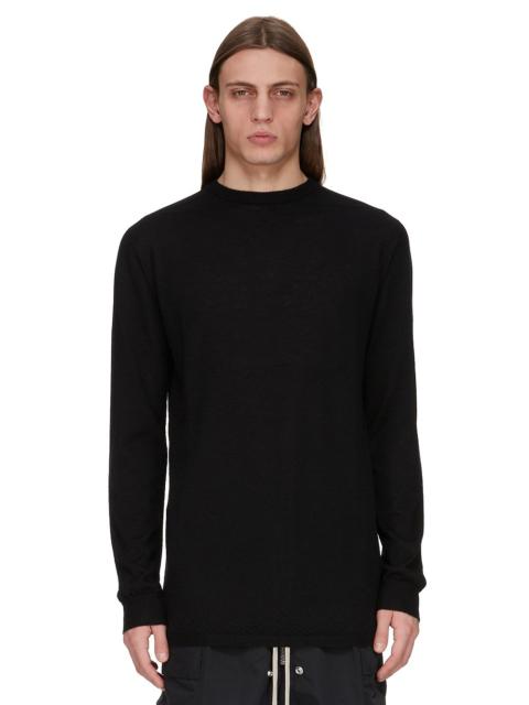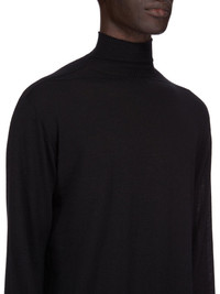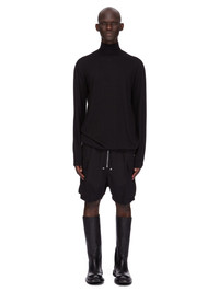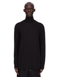 RICK OWENS SS25 HOLLYWOOD OVERSIZED TURTLE IN BLACK LIGHT WEIGHT RASATO KNIT THIS OVERSIZED TURTLE NECK SWEATER IS BELOW-HIP LENGTH WITH A LOOSE FIT. IT HAS A RIBBED TURTLENECK, HEM AND CUFFS. IT FEATURES SIGNATURE LEVEL SHOULDER SEAMS AND A KNIT LINE RUNNING DOWN THE CENTER BACK SPINE THIS LIGHTWEIGHT AND CLASSIC STITCH CASHMERE KNIT HAS A SOFT HANDFEEL COLOR: BLACK MATERIAL: 100% CASHMERE MODEL IS 189CM TALL MODEL WEARS SIZE M