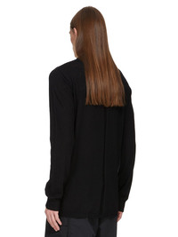 RICK OWENS SS25 HOLLYWOOD OVERSIZED LEVEL IN BLACK LIGHT WEIGHT RASATO KNIT THIS OVERSIZED LEVEL SWEATER IS BELOW-HIP LENGTH WITH A LOOSE FIT. IT HAS A RIBBED ROUND NECK, HEM AND CUFFS. IT FEATURES SIGNATURE KNIT LINE RUNNING DOWN THE CENTER BACK SPINE THIS LIGHTWEIGHT AND CLASSIC STITCH CASHMERE KNIT HAS A SOFT HANDFEEL COLOR: BLACK MATERIAL: 100% CASHMERE MODEL IS 189CM TALL MODEL WEARS SIZE M